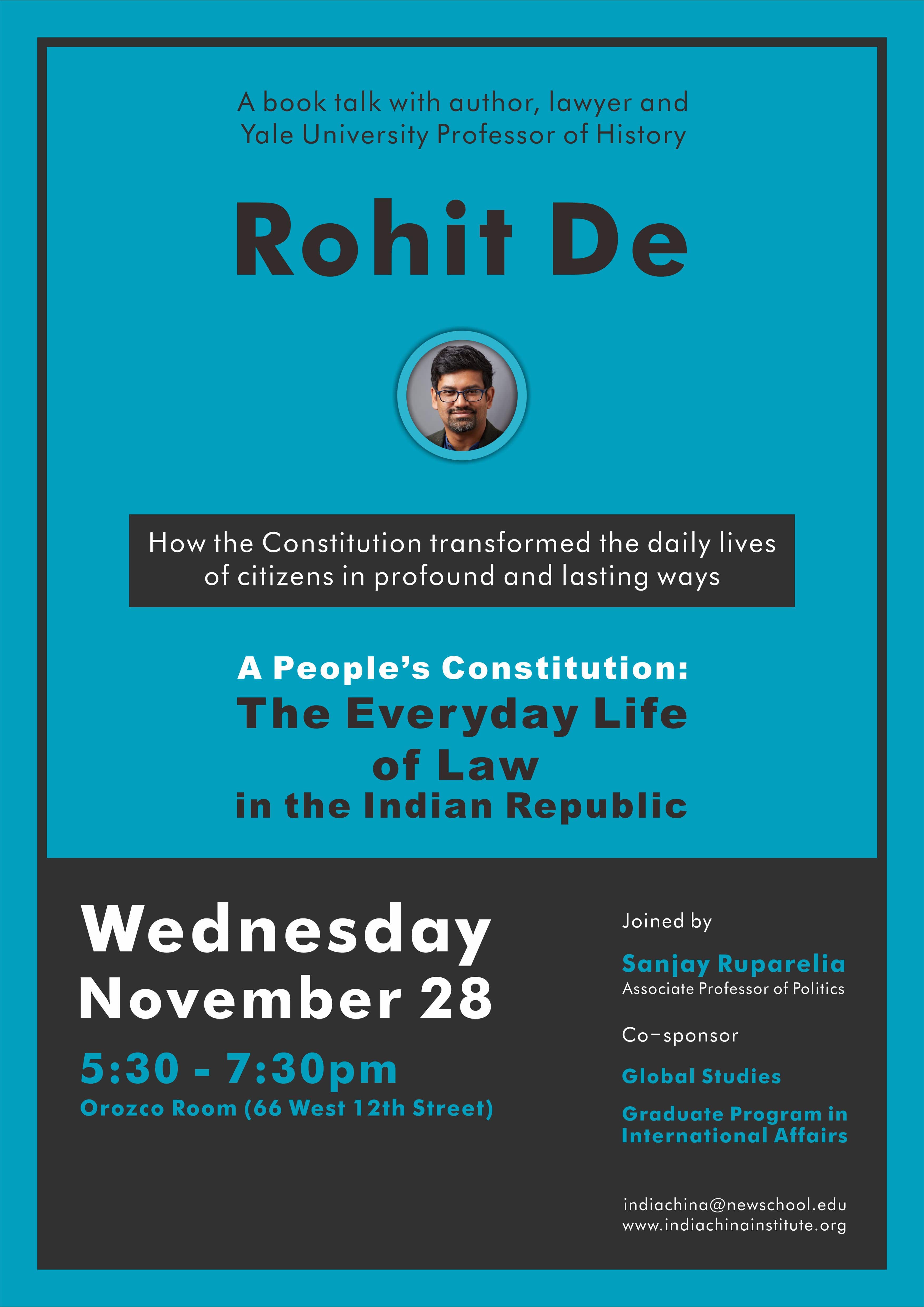 The India China Institute is proud to present “A People’s Constitution: The Everyday Life of Law in the Indian Republic”, a talk with author, lawyer, and Yale professor Rohit De on his book, A People’s Constitution.