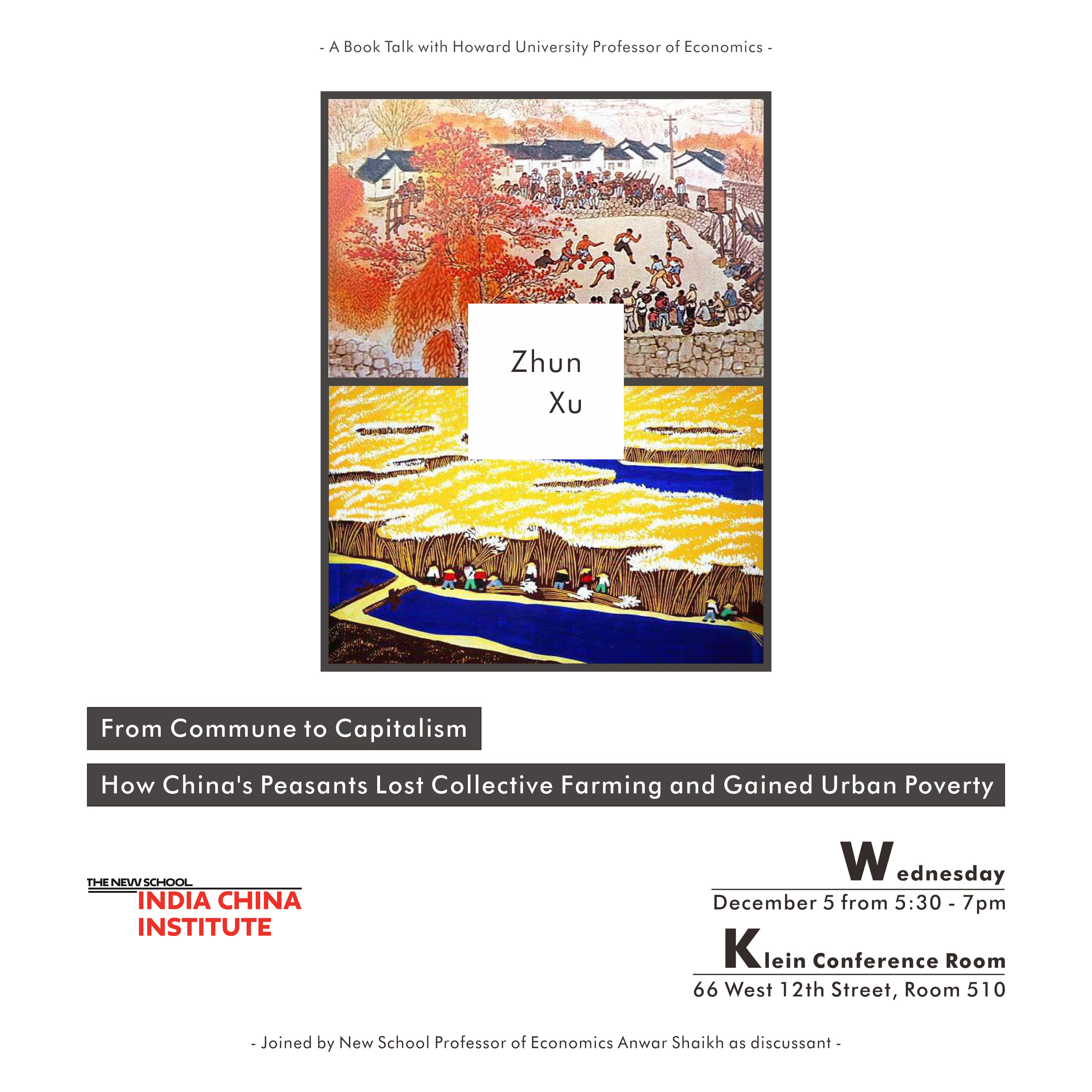 The India China Institute welcomes Howard University Professor Zhun Xu to speak about his recent book, From Commune to Capitalism: How China’s Peasants Lost Collective Farming and Gained Urban Poverty.