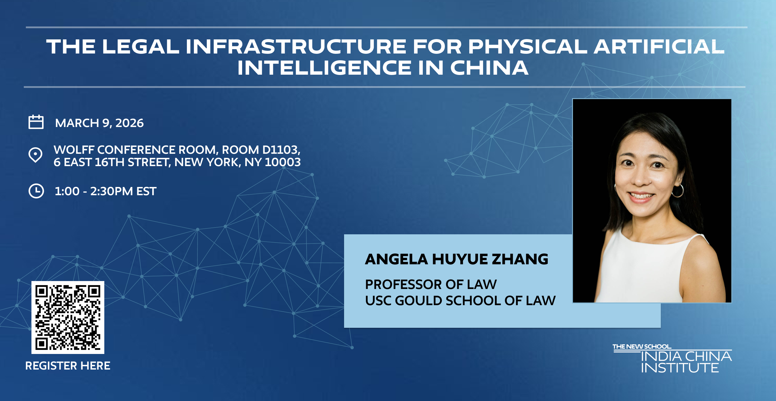 This talk offers a comprehensive account of how law serves as a critical layer of infrastructure supporting China's development of physical AI—systems embedded in and operating in the physical world. The discussion expands on Angela Huyue Zhang's paper, The Sixth Layer: The Legal Infrastructure for Physical Artificial Intelligence in China. Zhang is currently conducting research on the regulation of artificial intelligence.