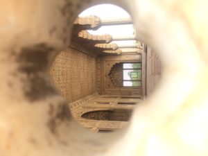 Twenty feet down the alley from the cha seller there is a sakan, a house in a traditional Islamic architectural style. The building itself is an arcade exterior surrounding an interior courtyard or sahn. You go inside. A man passes and hushes you. An old woman owns this sakan and she hates loud noises. He removes a chain from the door silently, delicately, and takes cha up the darkened stairwell to her room. The sounds of horns stretch so thin here they are almost gentle, almost musical. Sound unspools into silence. The gardens of the Sri Laxmi temple are the same. Sacred spaces: the temple and the home. The sacred and the everyday are interdependent in every way in Delhi, but when you enter the temple you remove your shoes. There is no scuff of sandals. In the courtyard you sip your cha slowly, still hot. Time isn’t just deeper in these places; as the sound thins into silence, time widens.