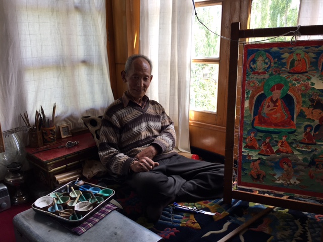 Talking about sacred art artists, we had the rare opportunity of meeting a traditional thangka painter at his local home in Ladakh.