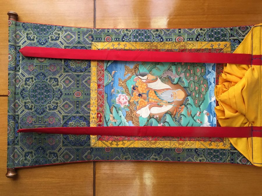 After he’s done with a painting or series of paintings, he would then create the proper silk cover on the front, rooting from Tibet’s nomadic culture, for the convenient of display and transportation.
