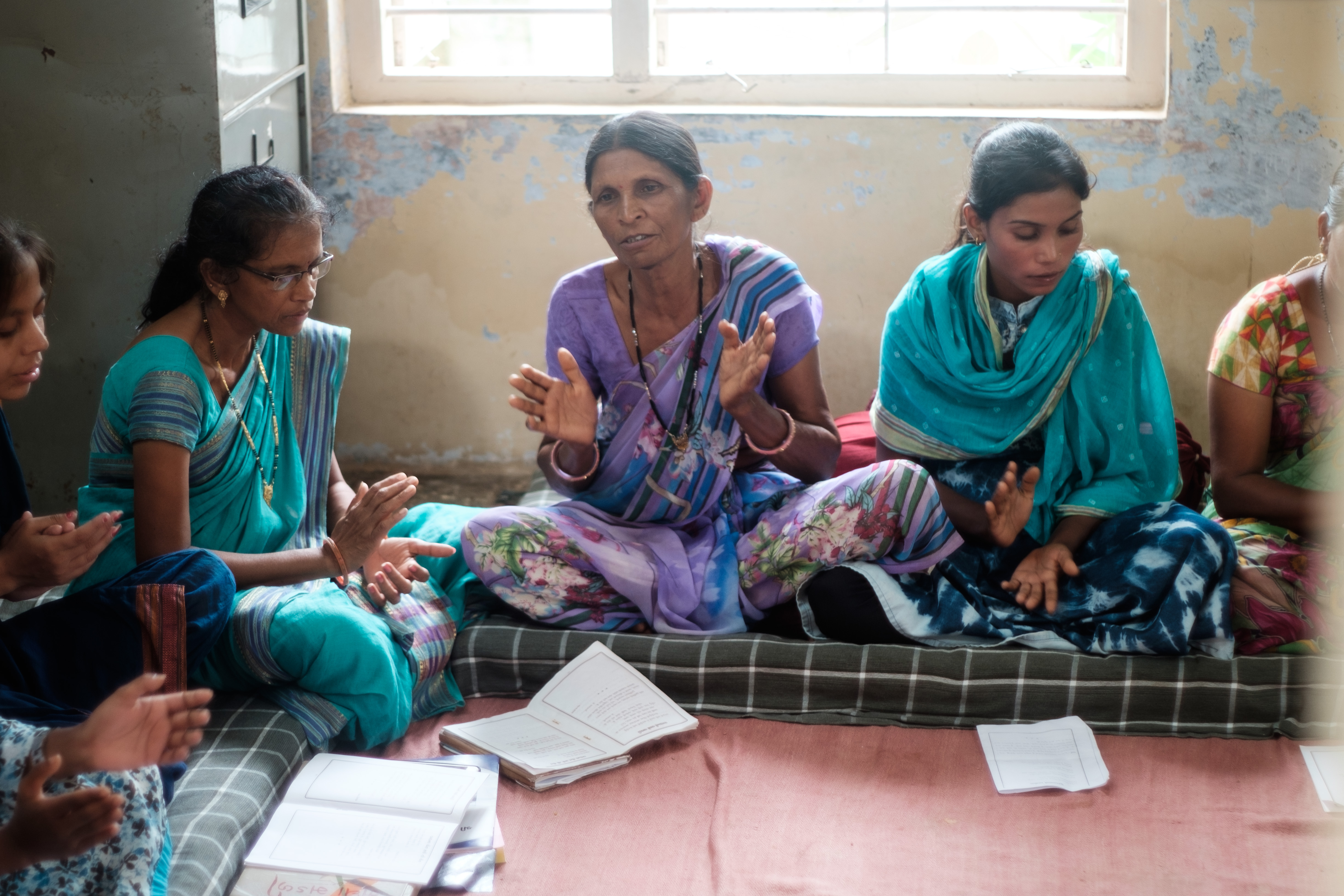A meeting of Aagewans (women leaders) hosted at the SEWA Federation office in Vyara.